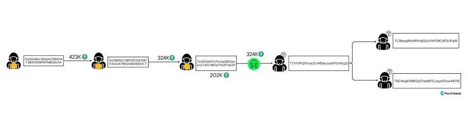 Как показал блокчейн-анализ, хакеры через серию быстрых транзакций перевели украденные токены из сети BNB Chain в Tron через платформу Symbiosis Finance. Сейчас криптовалюта находится на двух кошельках на Tron. Пока нет признаков вывода средств — вероятно, злоумышленники удерживают активы, предположили в PeckShieldAlert.