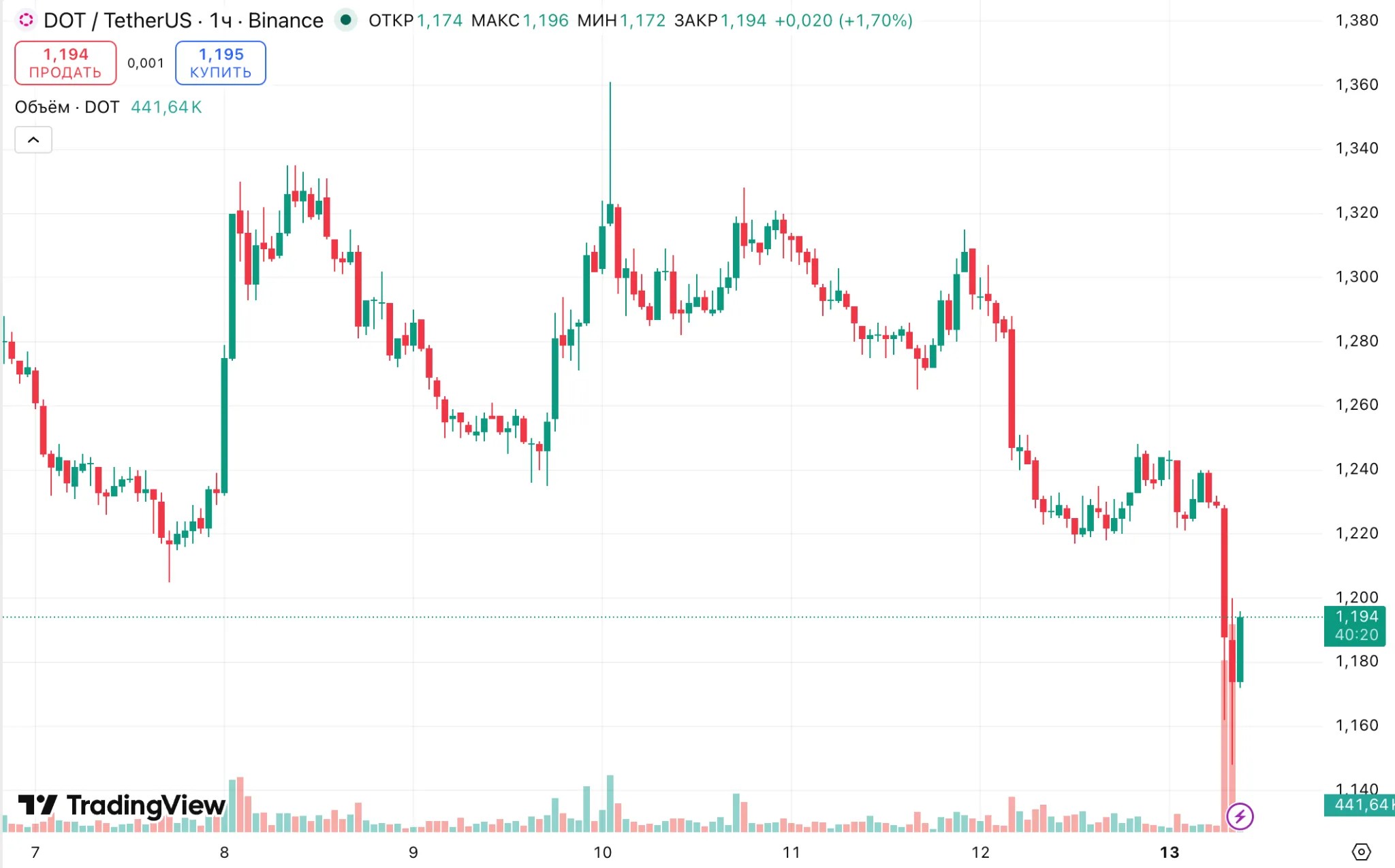 На фоне новостей об эксплойте курс $DOT снизился на 4% — до отметки $1,19.