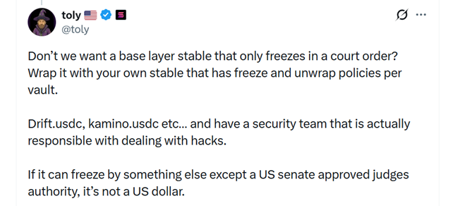 Он заявил, что эмитент $USDC отказался от заморозки активов после взлома, ссылаясь на «моральную дилемму» — компания не блокирует средства без соответствующего запроса правоохранителей и самостоятельные решения могут создать опасный прецедент.