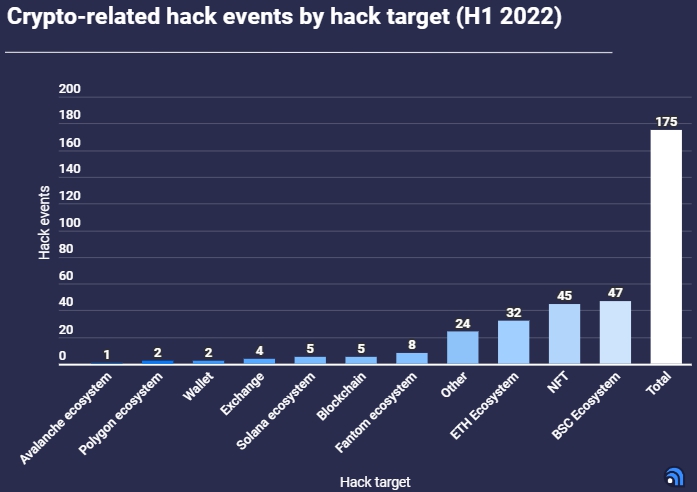 За полугодие проекты сферы NFT принесли злоумышленникам $84,6 млн в результате 45 инцидентов, а потери экосистемы Fantom из-за всего восьми атак составили $54,8 млн.