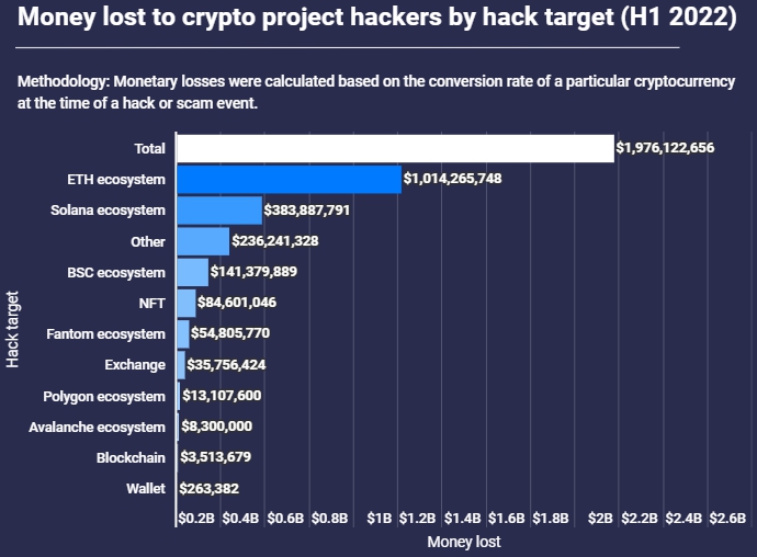 Нацеленные на криптоиндустрию хакеры украли $1,97 млрд в результате взломов 175 проектов в первой половине 2022 года, свидетельствуют данные Atlas VPN.