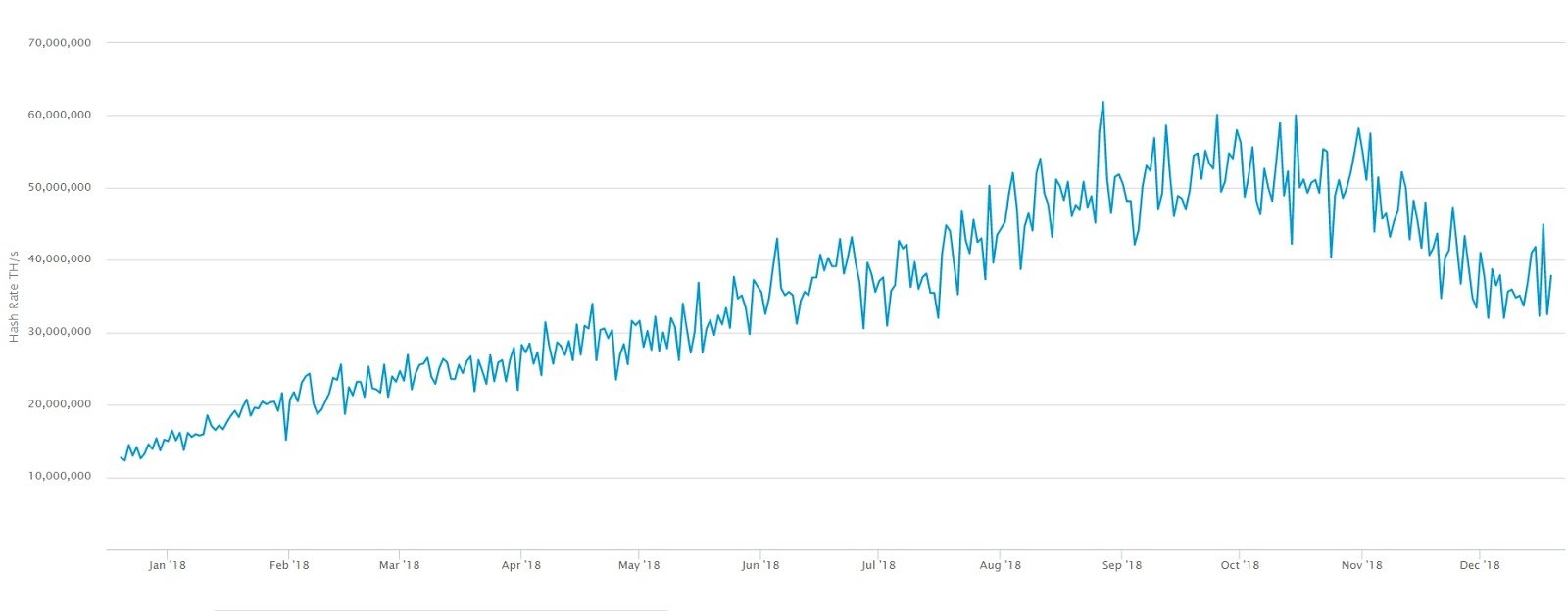 Since the hashrate in the bitcoin network reached a record high in August 2018, noting a jump of almost 2 times comparing to the beginning of this year and reaching the 15 exahash, today the average range varies from 40-60 exahash. The profitability of mining depends on several main factors: BTC prices, mining equipment utility and efficiency, block difficulty. In this regard, the sharp drop in BTC prices in mid-November and the increasing of the block difficulty, as well as the obvious problems of mining giants - all of this forced miners to sell equipment in despair and not wait for the end of the bearish trend, or simply hibernate and humbly prepare for the mining apocalypse.