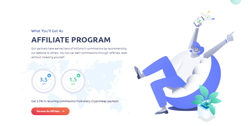 The CryptoHeap Referral program provides a simple and effective interface to the users. The participants can gain rewards when they share the platform with others. The referral program of CryptoHeap is designed with multiple levels of structure because it provides different amounts of commissions depending on the performance of the new user.