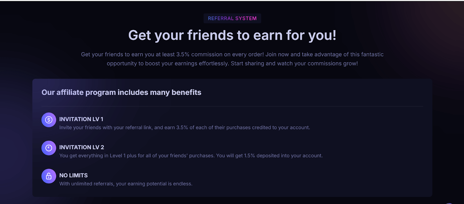 The referral program of OkayCoin is one of the easiest ways to create passive income. You can invite your friends with your referral link, and earn 3.5% of each of their purchases credited to your account. Also you can get everything in Level 1 plus for all of your friends’ purchases. Further you have the chance to get 1.5% deposited into your account.
