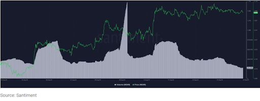 NEAR's price has dropped to its range before the news at $5.89 as of press time. In addition, NEAR had vigorous trading activity on August 11. The intraday trade volume on the platform increased to a high of over 845 million in a day due to Coinbase's statement. However, trade activity began to slow down just before the trading day ended. Trade volume on the platform was 244.559 million at the moment of writing, dropping by more than 200% in only four days.