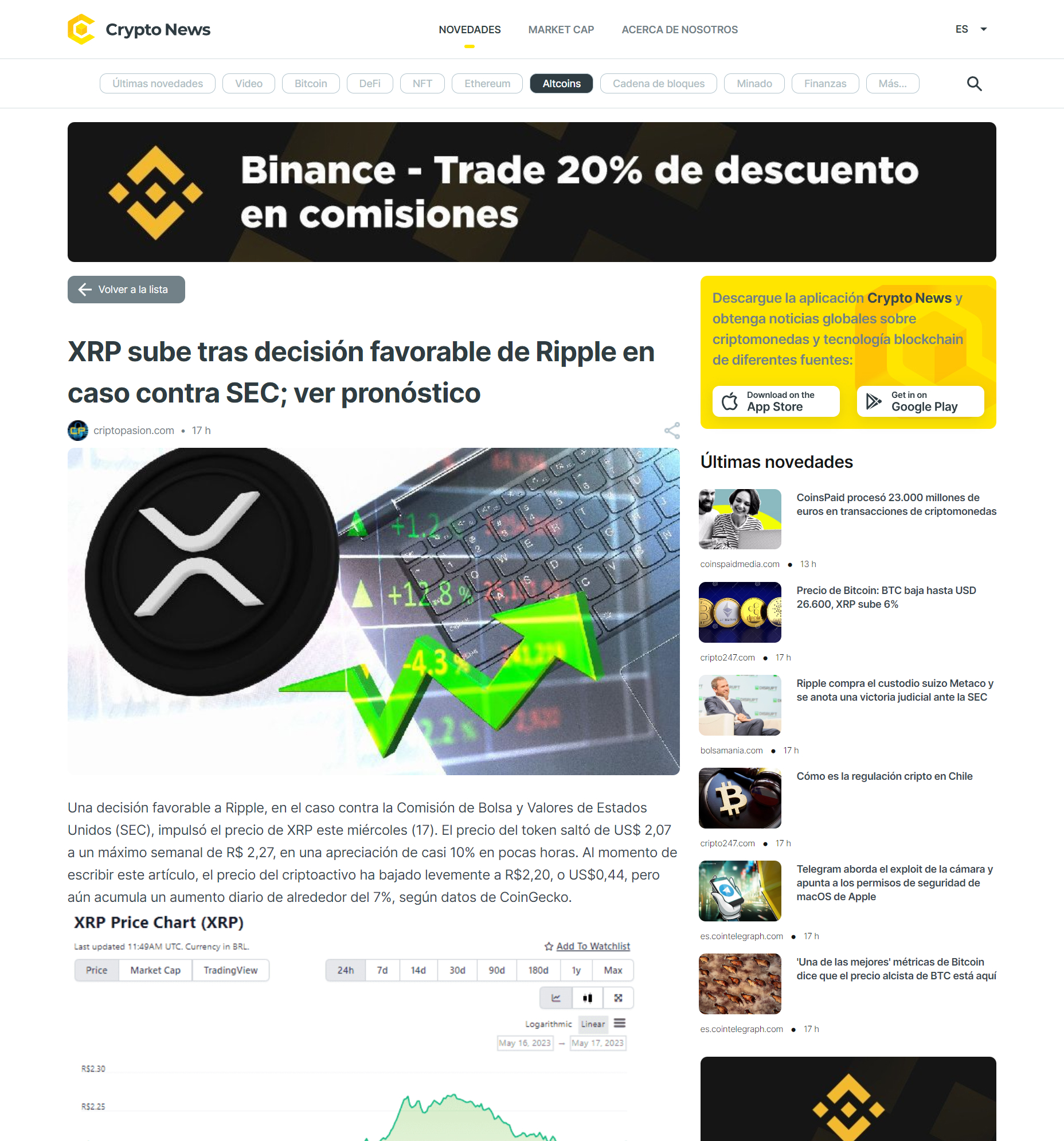 Publicación de un banner en el feed de noticias de la aplicación y en el sitio web.
