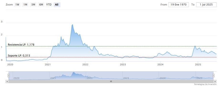 Un cierre diario por encima de la resistencia de 0.6560 dólares podría cambiar el impulso alcista. Los analistas establecen un precio objetivo superior a 0.70 dólares en caso de una decisión favorable sobre el ETF.