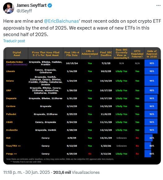 El lunes, los analistas de ETF de Bloomberg, Eric Balchunas y James Seyffart, estimaron en un 90% la probabilidad de aprobación de un ETF de Cardano, señalando que las decisiones finales sobre varios ETF de altcoin podrían llegar para el cuarto trimestre de 2025. Si se confirman, estos acontecimientos podrían afectar significativamente la trayectoria del precio de ADA.