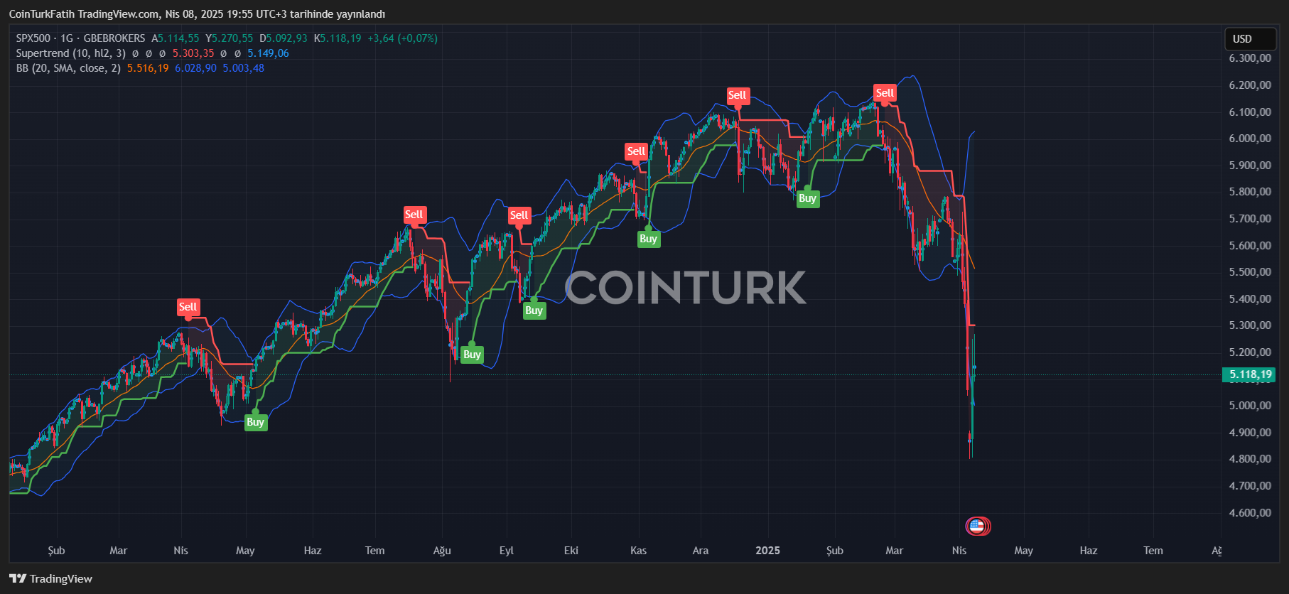 Las noticias del Lunes Negro ya habían surgido antes de que las criptomonedas comenzaran sus caídas de hasta el 20%. Los informes indican que se está implementando un arancel aduanero adicional del 104% contra China. Este desarrollo de última hora provocó que el índice SPX cayera rápidamente del rango de 5160 a poco menos de 5110.