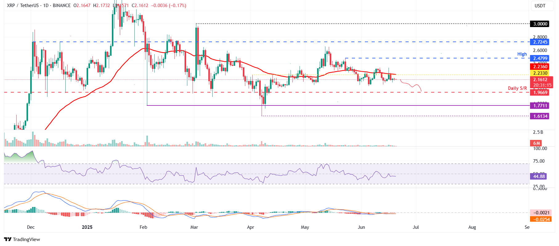 El precio de XRP intentó cerrar por encima de la EMA de 50 días en 2.24$ el lunes, pero fracasó, cayendo posteriormente un 3.53% al día siguiente y consolidándose alrededor del nivel de 2.15$ hasta el jueves. Al momento de escribir el viernes, se mantiene alrededor de 2.16$.