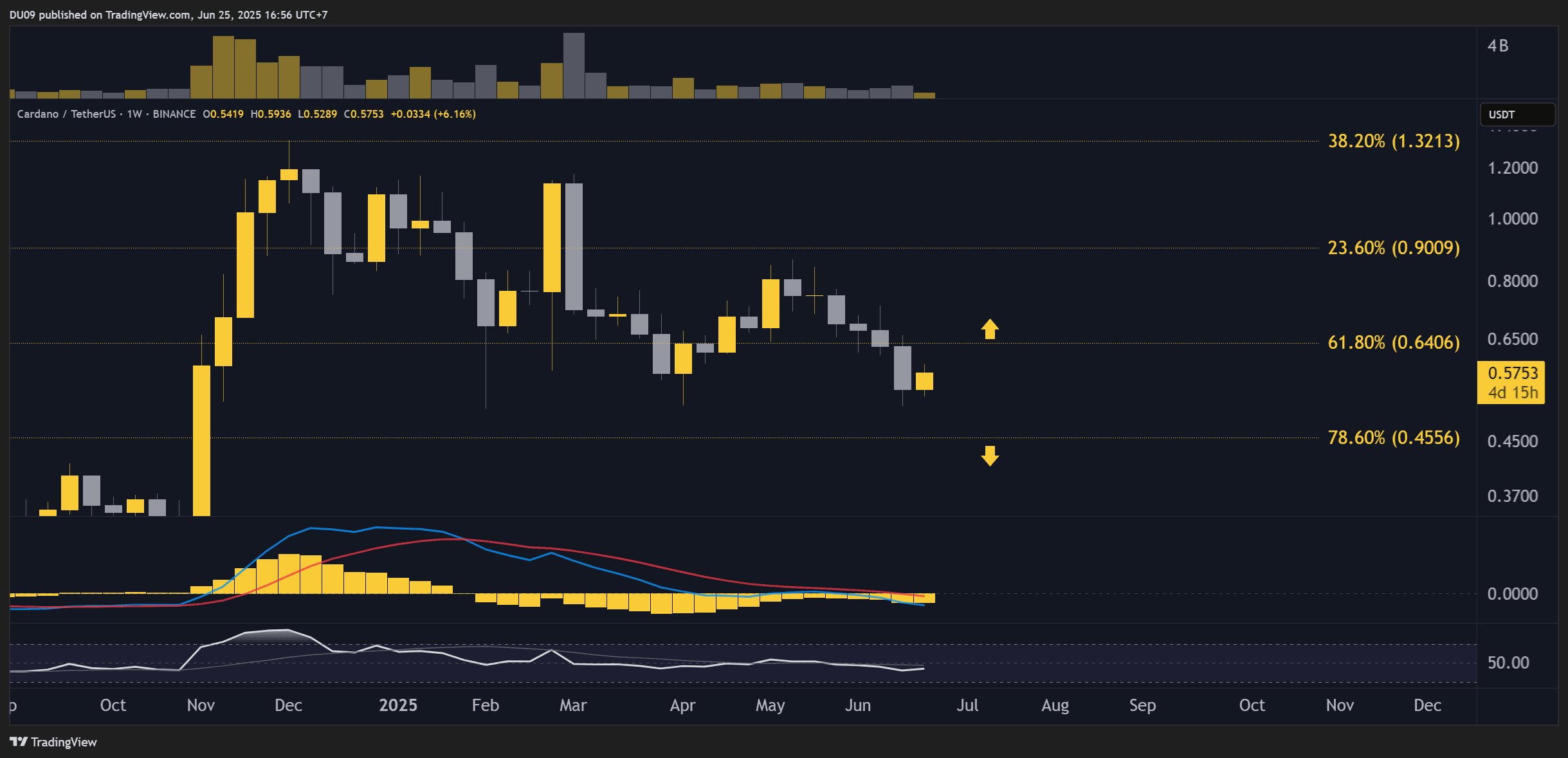 La presión bajista persiste y los compradores siguen sin reaccionar, lo que llevó a Cardano a perder el nivel psicológico de los 0,60 USD. Al momento de esta publicación, el precio cotiza por debajo de los USD 0,58 y podría continuar descendiendo hasta el soporte en USD 0,50, una zona donde anteriormente se observó interés comprador.