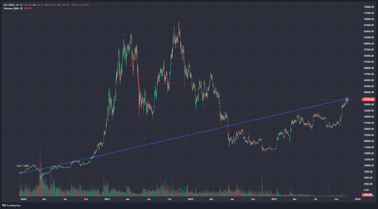 En primer lugar, Escudero examina el rendimiento de bitcoin (BTC), destacando su crecimiento notorio desde diciembre de 2019, cuando su precio rondaba los USD 7,000. A pesar de un mercado bajista que lo llevó a mínimos por debajo de los USD 4,000, factores como la presión de tasas de interés, la adopción institucional y los avances tecnológicos impulsaron su ascenso actual a alrededor de USD 37,000.