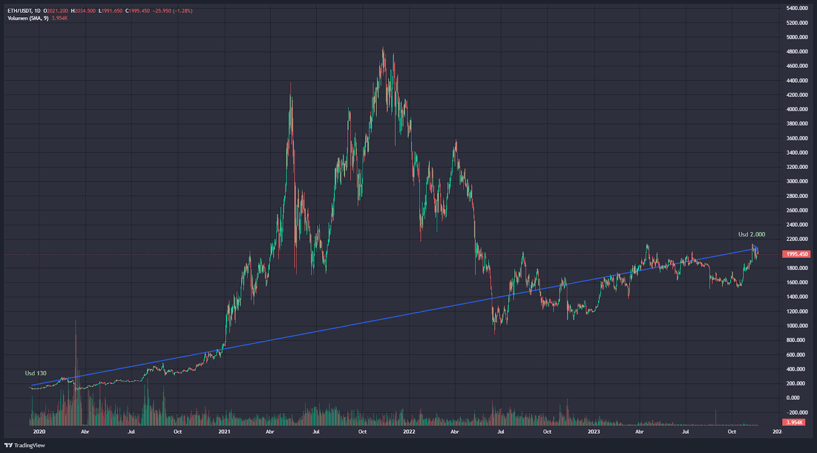 En cuanto a ether (ETH), la segunda criptomoneda más grande por capitalización de mercado, el análisis de Escudero muestra un retorno del 1,438% en cuatro años, lo que ajustado por inflación se traduce en un rendimiento del 1,180%.