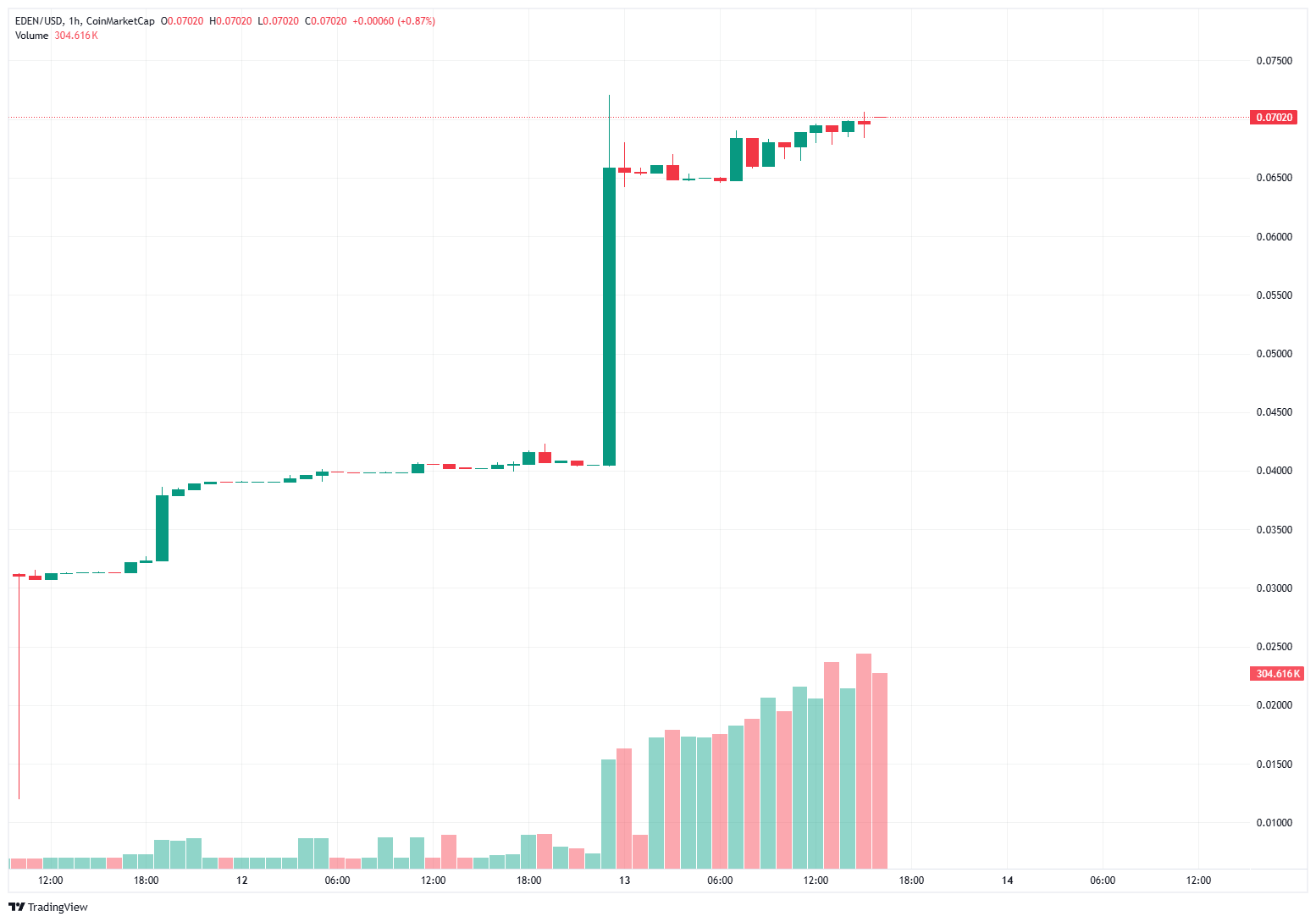 While Eden Network announced its decision to shut down, its native token, EDEN, surprised investors and the market by gaining 73% in value in the last 24 hours.