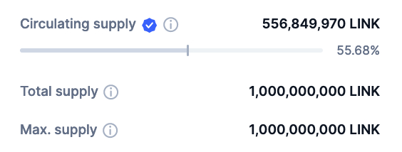 Let’s explore Chainlink’s supply inflation and its economic implications. As of this writing, Chainlink has a circulating supply of 556.849 million LINK. This results in a supply inflation of 128.559 million LINK (30%) in two and a half years, or around 12% a year.