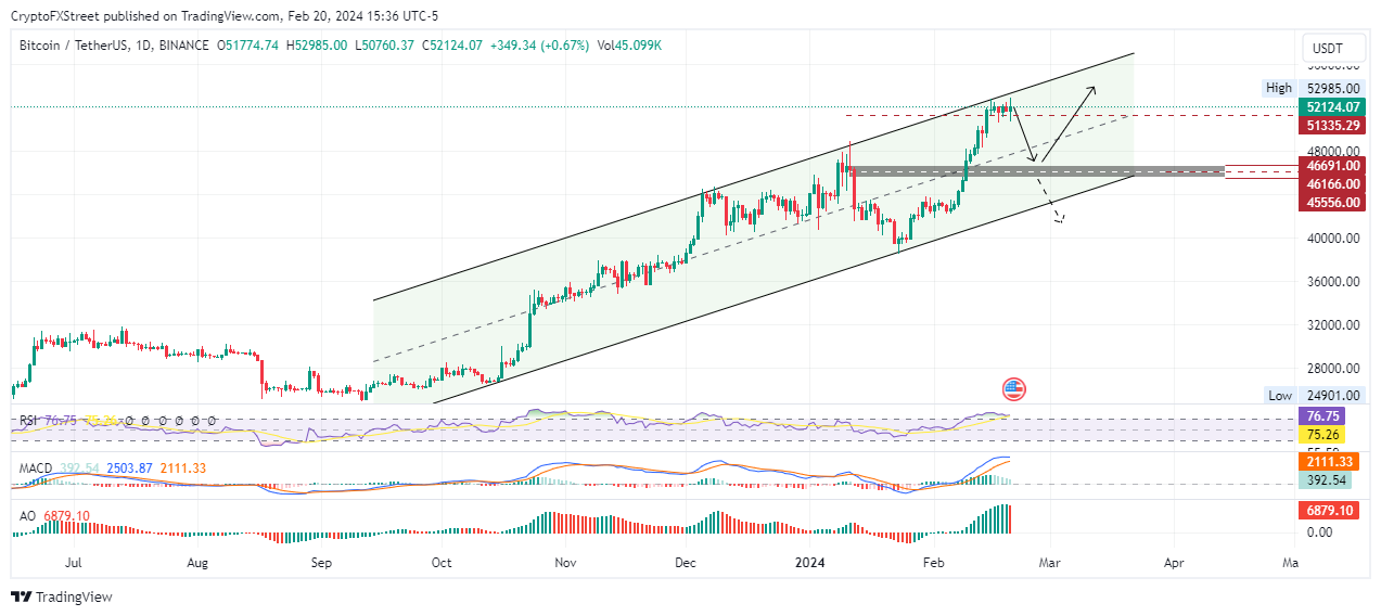 Meanwhile, Bitcoin price appears to be gaining strength after liquidating millions in long positions. The largest cryptocurrency by market capitalization appears to be establishing new support at $51,335. Nevertheless, caution is advised as BTC is still massively overbought, which is often recipe for a correction.