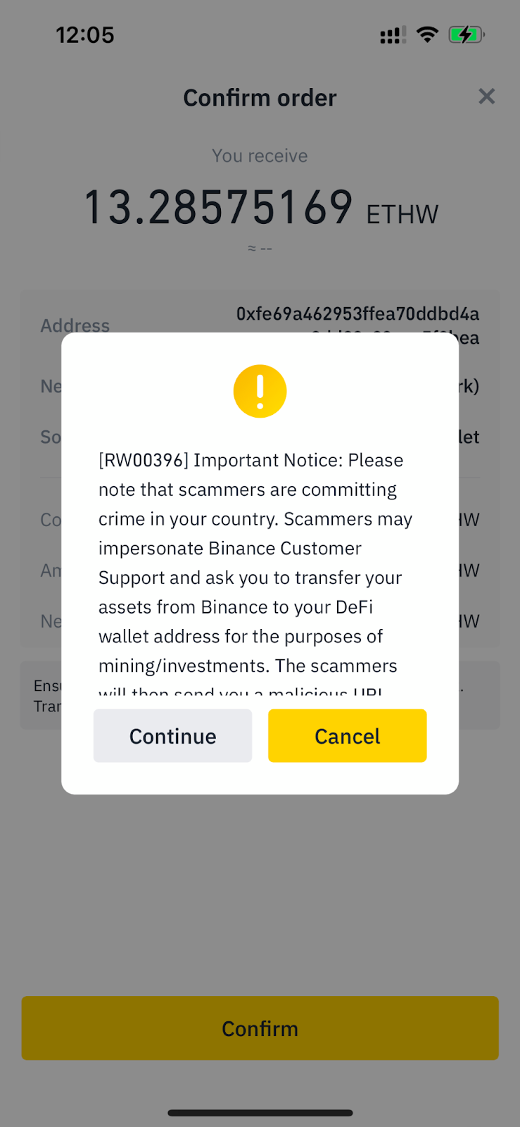 Pop-up notifications are Binance’s mildest risk alert method. We will use these to notify users when they appear to be falling into suspicious scam traps. Here, we would like to remind users that if you see our pop-up window, please read the content carefully to ensure the safety of your funds.