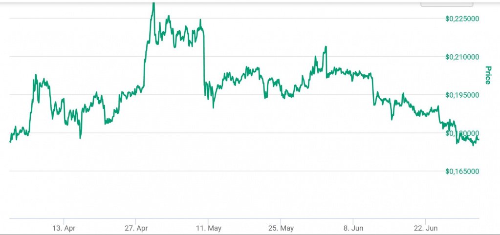 Стоимость XRP за квартал практически не изменилась — 0,17 доллара, однако в конце апреля цена монеты поднималась выше 0,23 доллара. Капитализация XRP также особо не изменилась.