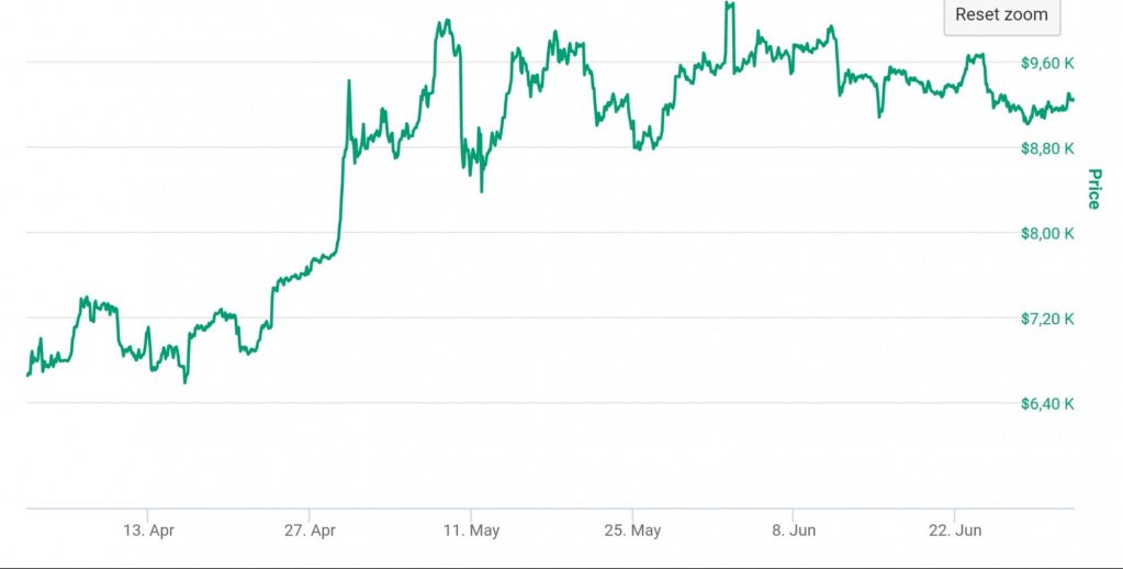 Как уже отмечалось выше, стоимость биткоина за второй квартал выросла - с 6 354 доллара до 9 218 долларов.Рис. 3 Динамика стоимости биткоина