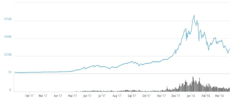 За 2017 год капитализация криптоденег увеличилась в 32 раза – с 17,9 млрд до 596,1 млрд долларов. 07 января 2018 года совокупная стоимость цифровых денег достигла своего исторического максимума – 828 млрд долларов. Однако после взятия самой высокой вершины последовала коррекция, которая продолжается до сих пор.