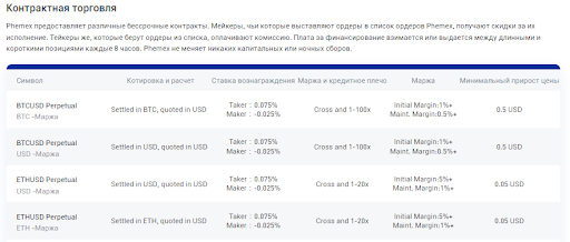 Комиссионная политика биржи Phemex выглядит следующим образом: