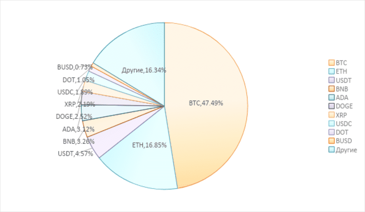 Рисунок 1.2: Доля рынка ТОП-10 криптовалют в общем объеме рынка криптовалют