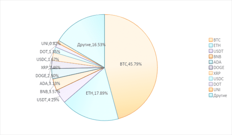 Рисунок 1.2: Доля рынка ТОП-10 криптовалют в общем объеме рынка криптовалют