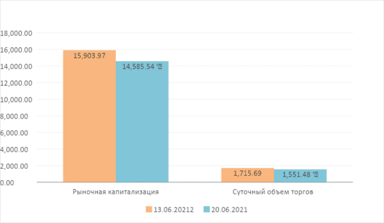 По состоянию на 20 июня 2021 года общая рыночная стоимость проектов цифровых монет достигла $867,2 млрд, снизившись на 8,18%. Средняя рыночная стоимость проектов цифровых монет достигла $18,0 млрд, увеличившись на 6,27%. Общая рыночная стоимость платформенных проектов достигла $390,4 млрд, снизившись на 9,68%.