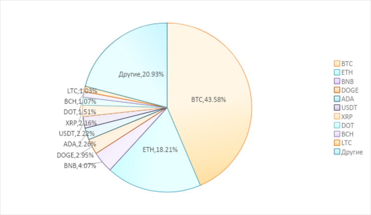 Рисунок 1.2: Доля рынка ТОП-10 криптовалют в общем объеме рынка криптовалют