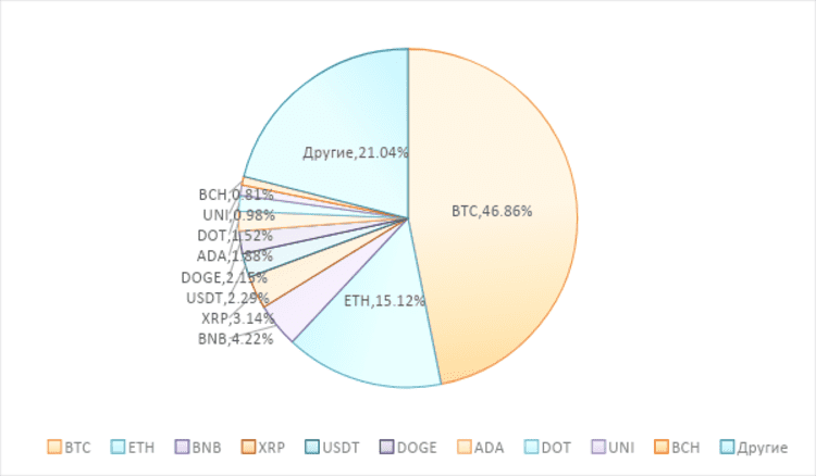 Рисунок 1.2: Доля рынка ТОП-10 криптовалют в общем объеме рынка криптовалют