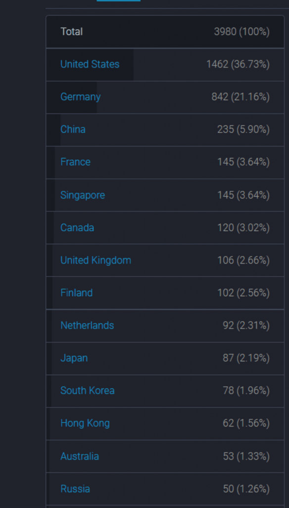 Количество узлов в биткоине сократилось на 1,45%, количество узлов в эфириуме за неделю сократилось на 2,00%. По состоянию на 2 мая 2021 года насчитывалось 9627 биткоин-узлов, по сравнению с предыдущей неделей их количество уменьшилось на 1,45% по сравнению с прошлой. 1876 узлов находились в США, 1777 узлов в Германии и 239 узлов в России, каждый из которых составлял 19,49%, 18,46% и 2,48% от общего числа биткоин-узлов соответственно.