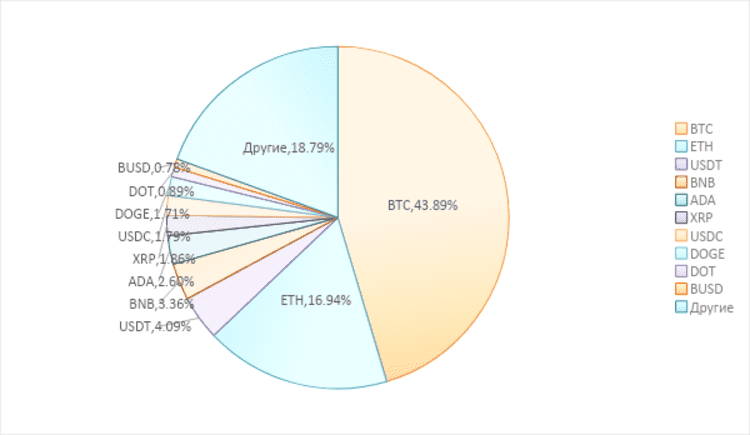 Рисунок 1.2: Доля рынка ТОП-10 криптовалют в общем объеме рынка криптовалют