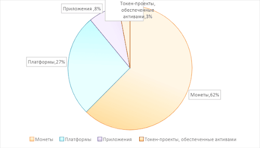 Распределение по сегментам рынка среди 100 ведущих криптовалют оставалось стабильным. По состоянию на 17 октября, среди 100 ведущих проектов количество проектов класса монет и проектов токенов, обеспеченных активами уменьшилось на 1. Проектов класса приложений и проектов класса платформ увеличилось на 1. Наибольшая общая рыночная капитализация по сегментам по-прежнему у проектов монет, на долю которых приходилось 62,43 % от общей рыночной капитализации 100 крупнейших проектов.