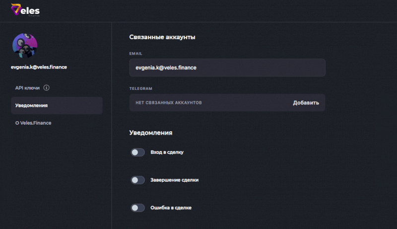 - То, что нужно для создания нового API-ключа, описано в инструкции на сайте Veles
