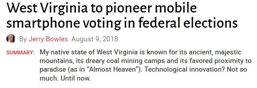 Власти штата решили, что в 24 из 55 округов гражданам (военным и их семьям) будет предоставлена возможность голосовать с помощью мобильного телефона, а точнее смартфона. В итоге специальным приложением, разработанным Voatz, воспользовались 150 человек.