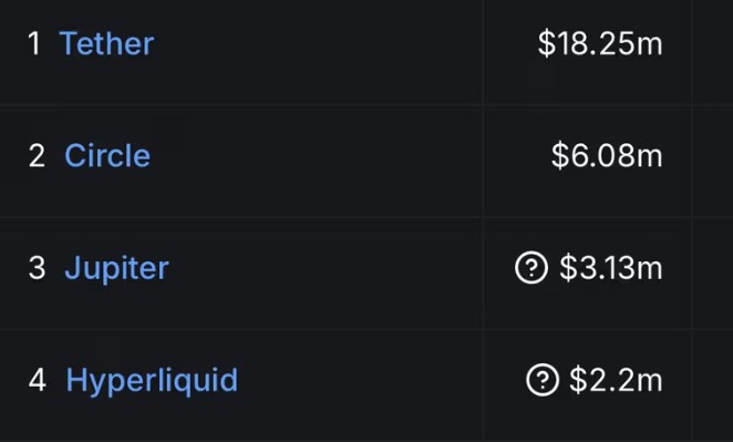 На рынке DeFi произошли заметные изменения: Jupiter Exchange обошла Hyperliquid по суточной выручке и теперь занимает третье место среди самых прибыльных протоколов.