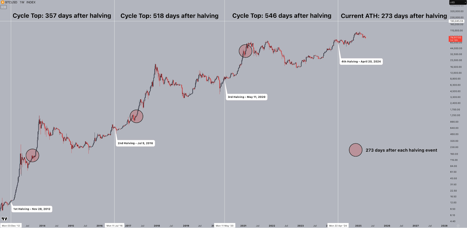 Биткоин достиг нового исторического максимума выше $109 000 20 января, через 273 дня после халвинга биткоина в 2024 году, что сигнализирует об ускорении рыночного цикла.